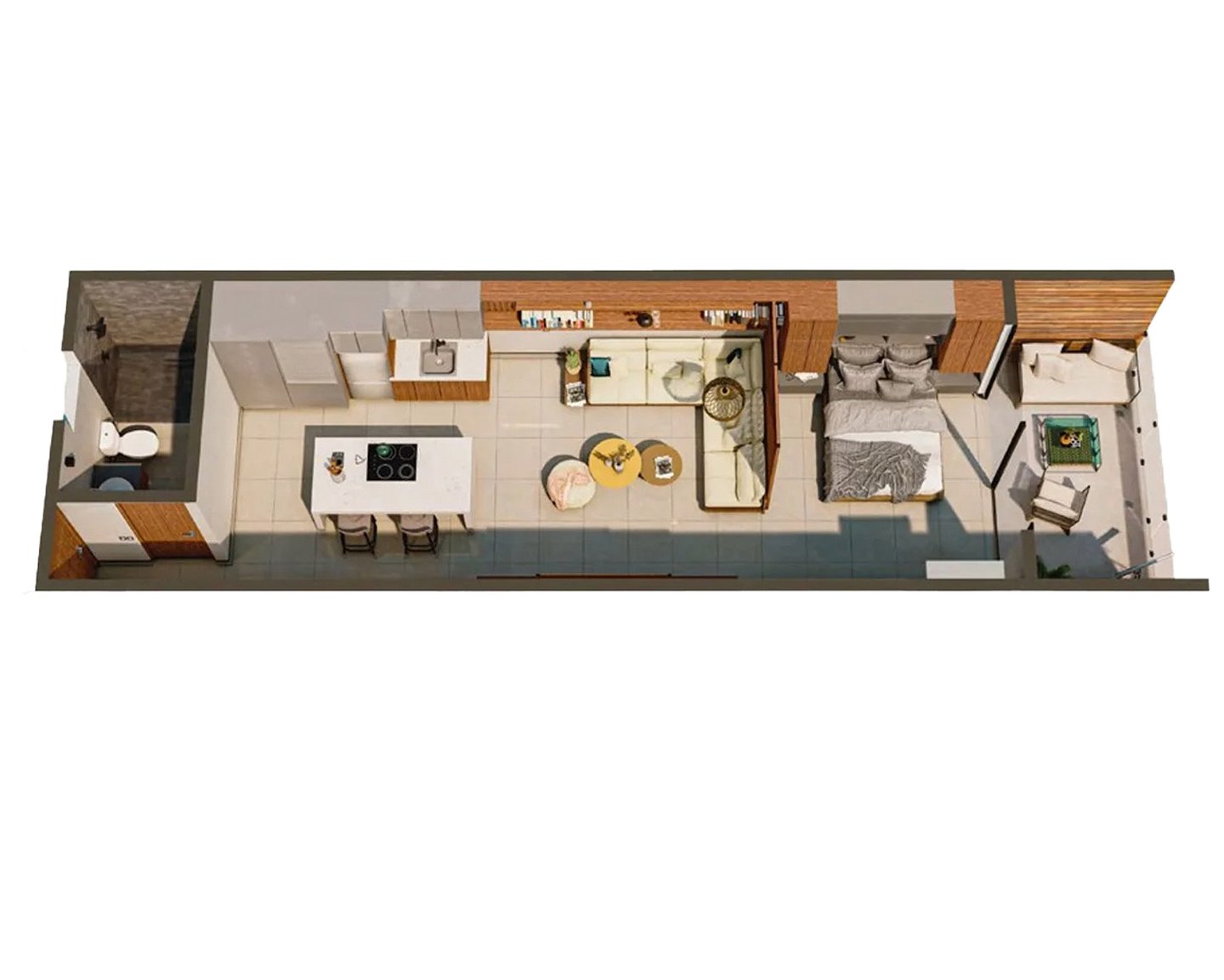 1 Habitación, 1 Baño Completo, Terraza, Cocina-Comedor