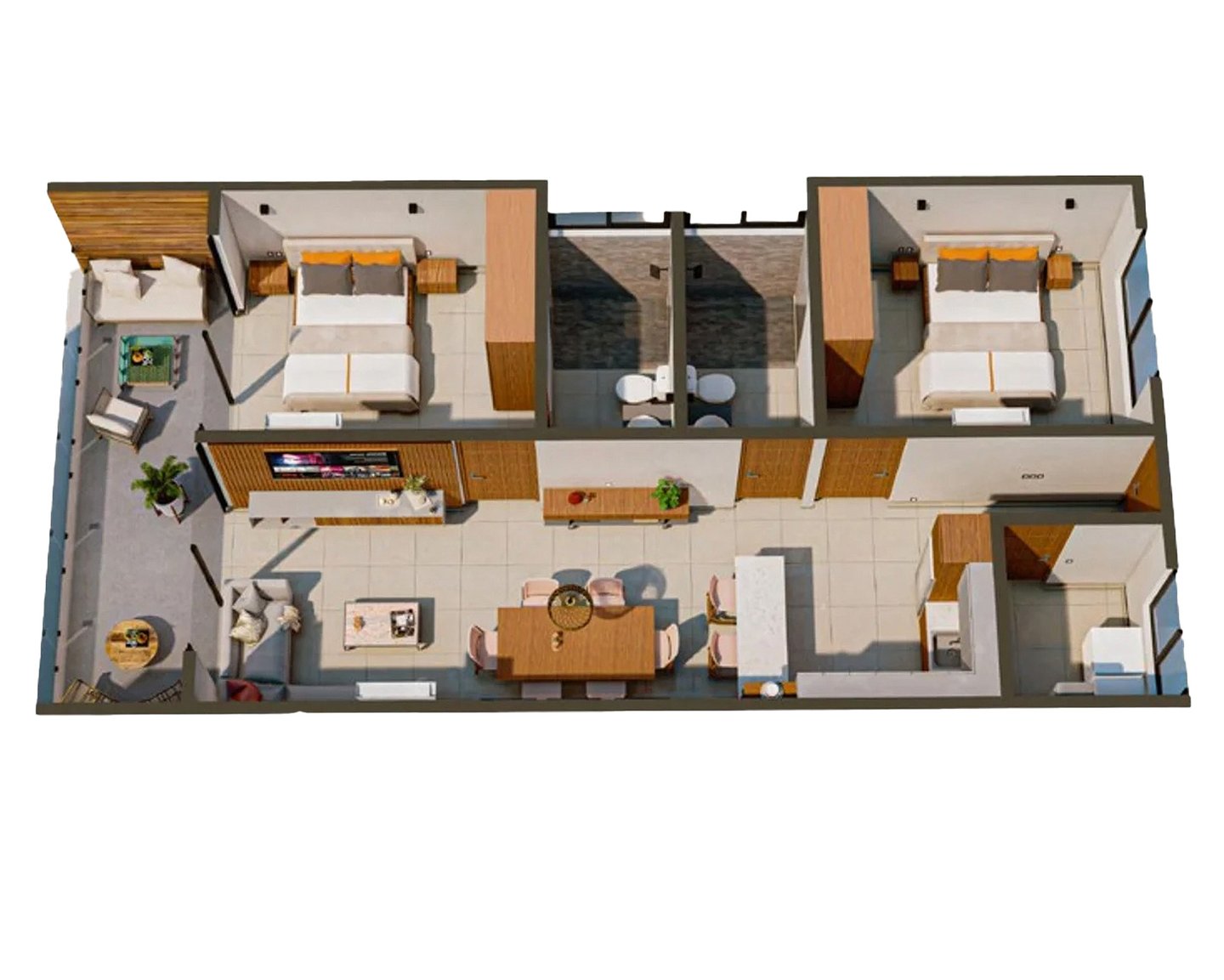 2 Habitaciones, 2 Baños Completos, Terraza, Comedor, Cocina, Cuarto de Servicio