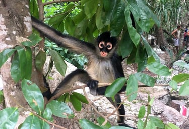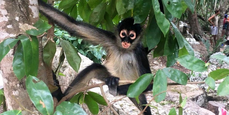 Es un cenote abierto con una profundidad que va de los 3 a los 20 metros en distintas zonas. Cabe destacar que para los saltos de 7 metros, debes subir a un árbol y sentir la adrenalina mezclada con el calor que te invita a darte el chapuzón más refrescante. Lo bonito es que desde arriba, podrás saludar directamente a los monos araña que andan libres o paseando entre árboles.