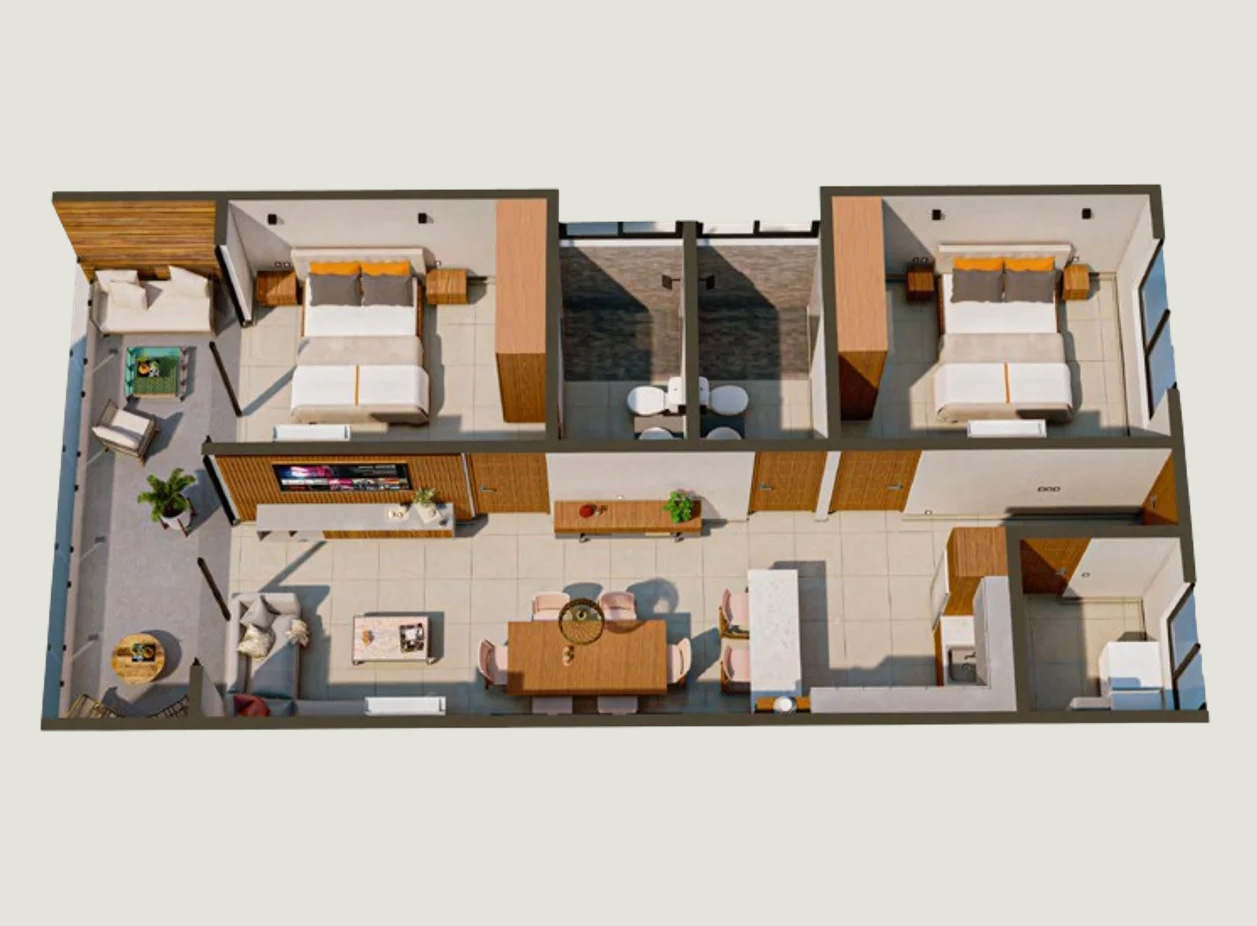2 Habitaciones, 2 Baños Completos, Terraza, Comedor, Cocina, Cuarto de Servicio